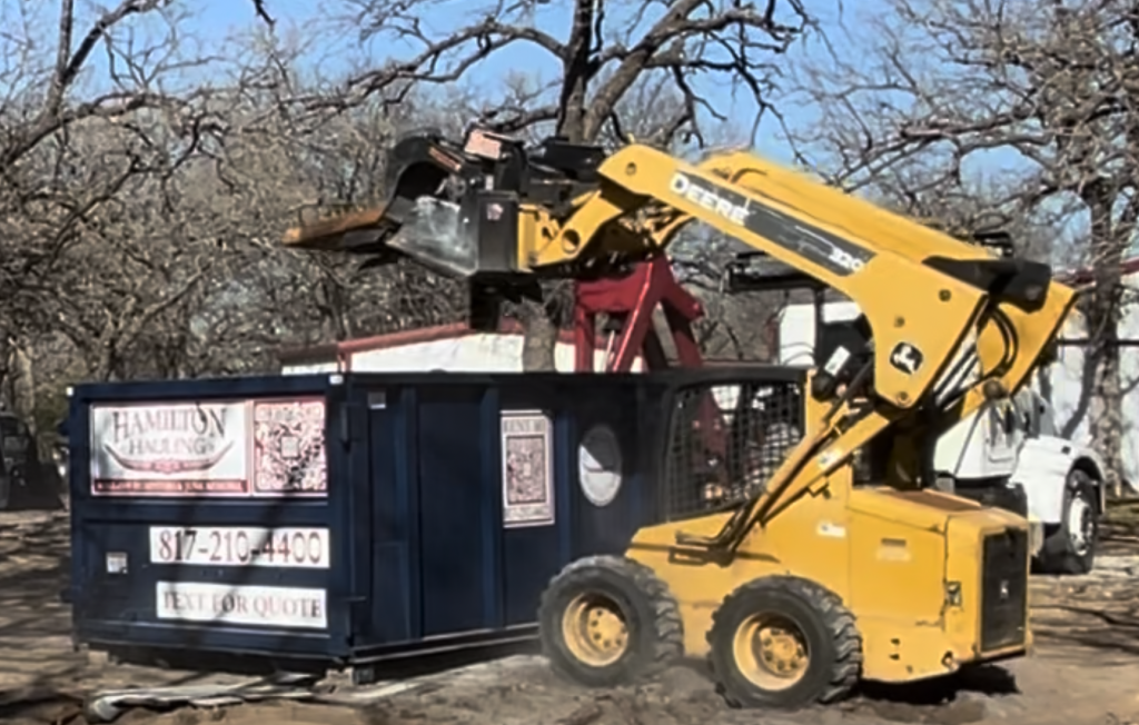 We can also bring in heavy equipment such as our skid steer demo dozer to demo sheds, and small structures, or any other bulk debris you need to dispose of in or around Fort Worth, Texas.